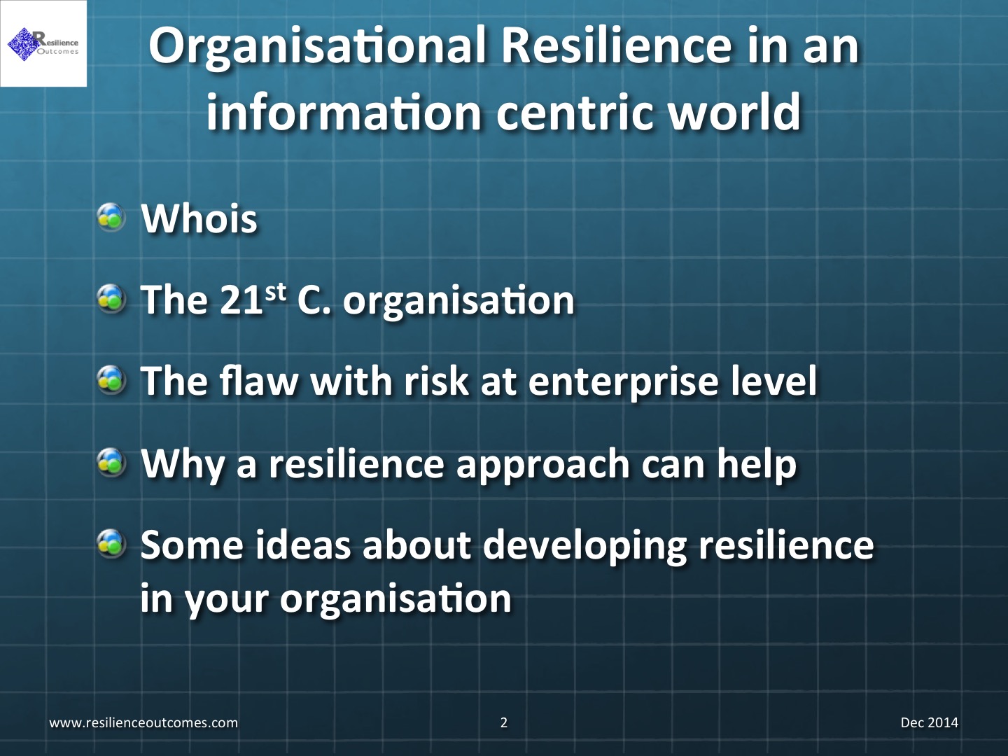 - Slide 2 Organisational Resilience in an Information Centric World